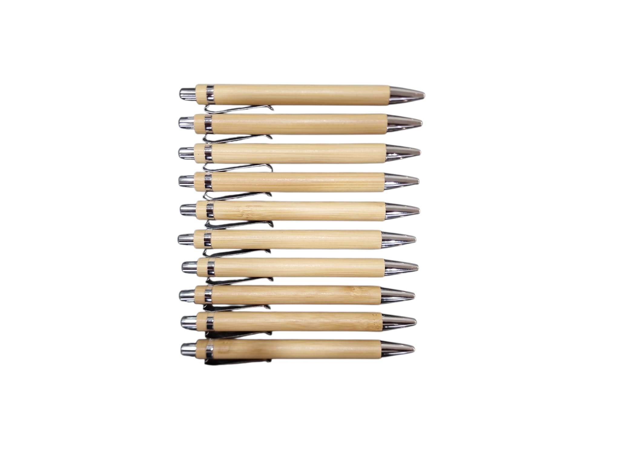 Laat de pen graveren met een naam, datum, quote of logo – subtiel en stijlvol zichtbaar op het gladde bamboe oppervlak.
