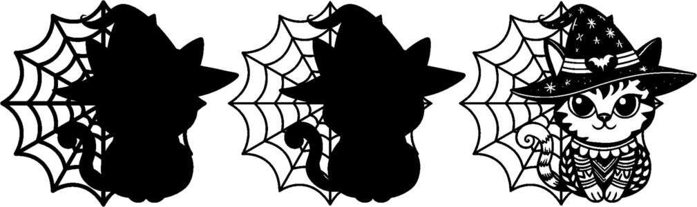 - Ontwerp: katje met heksenhoed en spinrag