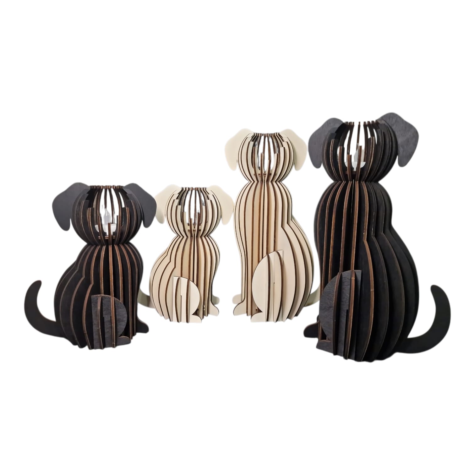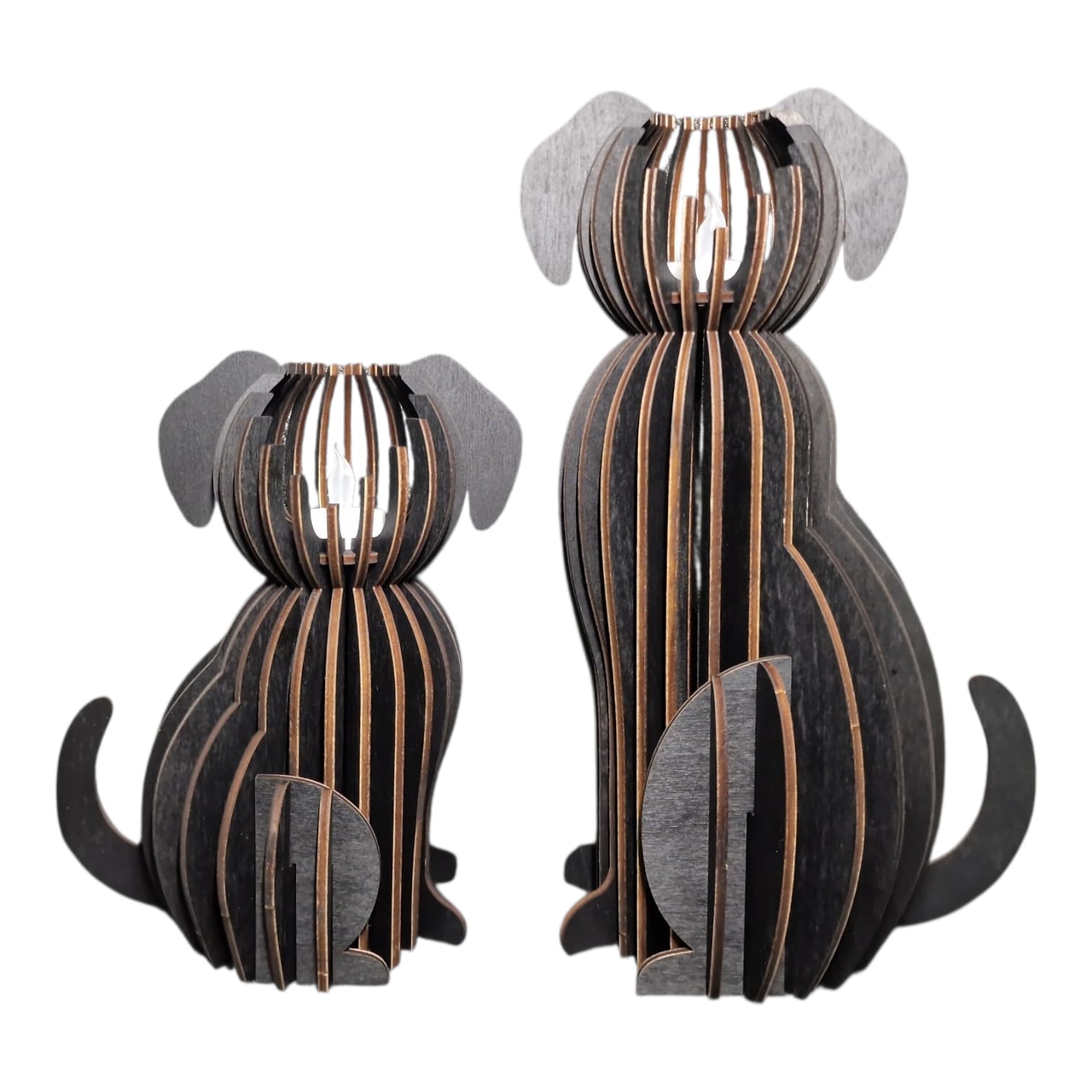Deze stijlvolle kandelaars zijn gemaakt van lasergesneden populieren multiplex en hebben een uniek hondenontwerp met schattige hangoren.