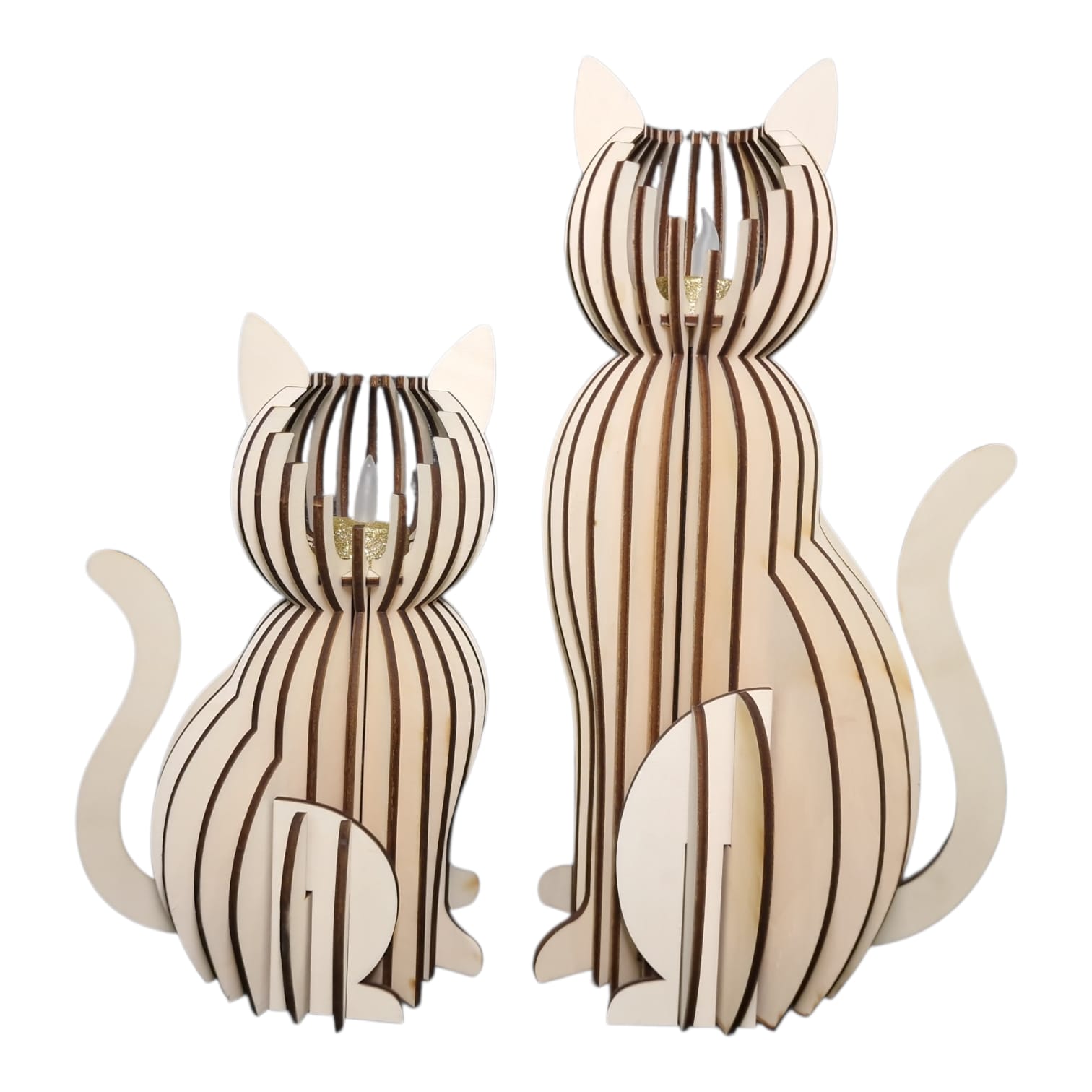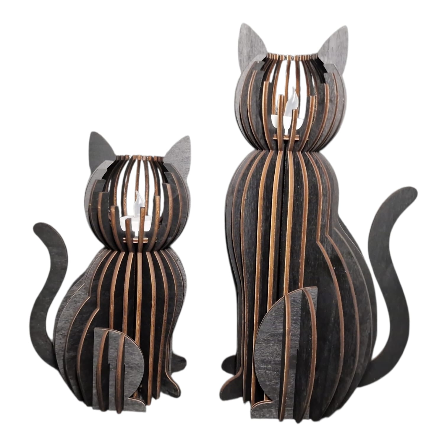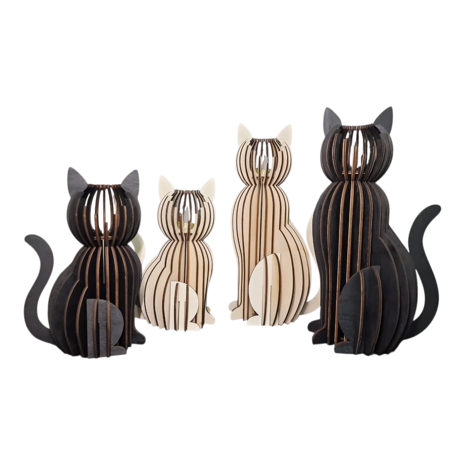 Deze stijlvolle kandelaars zijn gemaakt van lasergesneden populieren multiplex en hebben een uniek kattenontwerp met een strak en modern karakter.